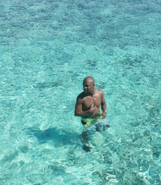 Floyd Mayweather và đội ngũ đồng hành tới nghỉ tại một khu resort sang trọng tại Maldives hôm 23/4. Giá thuê một phòng hạng nhất ở đây là 20.000 đôla/ngày đêm.