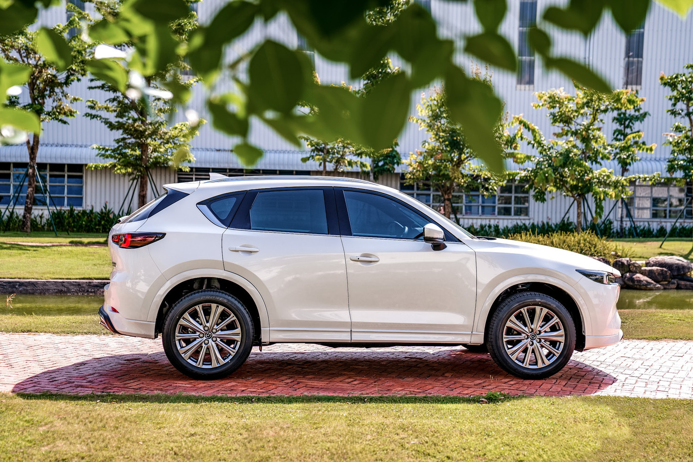 Đồng thời, thân xe nổi bật với bộ mâm đúc hợp kim 19 inch thiết kế mới. Đặc biệt, bộ la-zăng cũng được tinh chỉnh khi khách hàng nâng cấp các gói tùy chọn Sport hay Exclusive mang đến diện mạo mạnh mẽ, hiện đại giúp gia tăng tính thể thao, khỏe khoắn đậm chất SUV. Phía sau xe, CX-5 sử dụng đuôi xe chính cụm đèn hậu LED tinh xảo, được thiết kế theo xu hướng hiện đại kết hợp với hệ thống ống xả kép mang tính thể thao.