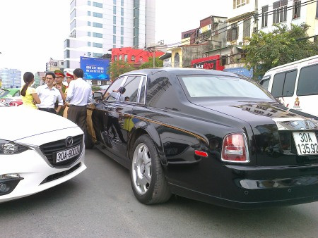 Theo đó, tại một đoạn giao cắt trên đường Đại Cồ Việt (Hà Nội), một chiếc Mazda3 màu trắng khi sang đường đã tông vào hông xe Rolls-Royce Phantom phiên bản Rồng đang chạy thẳng.