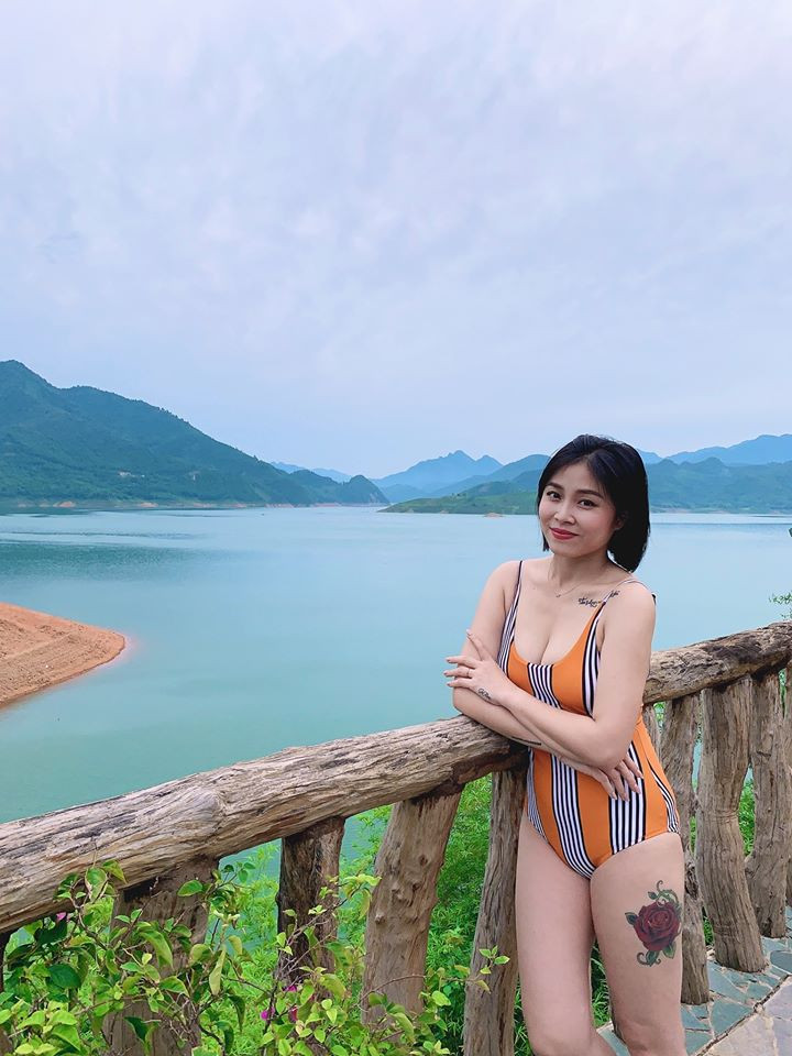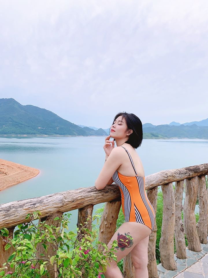 MC “Chúng tôi là chiến sỹ” diện đồ bơi một mảnh, khoe vòng một gợi cảm, quyến rũ.