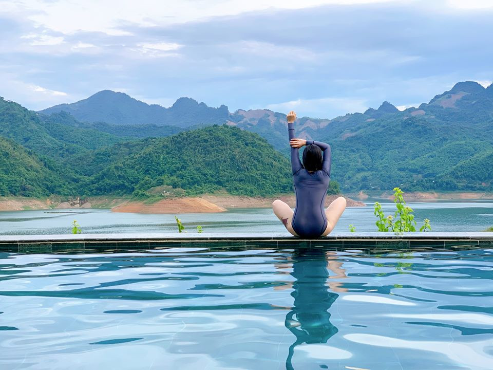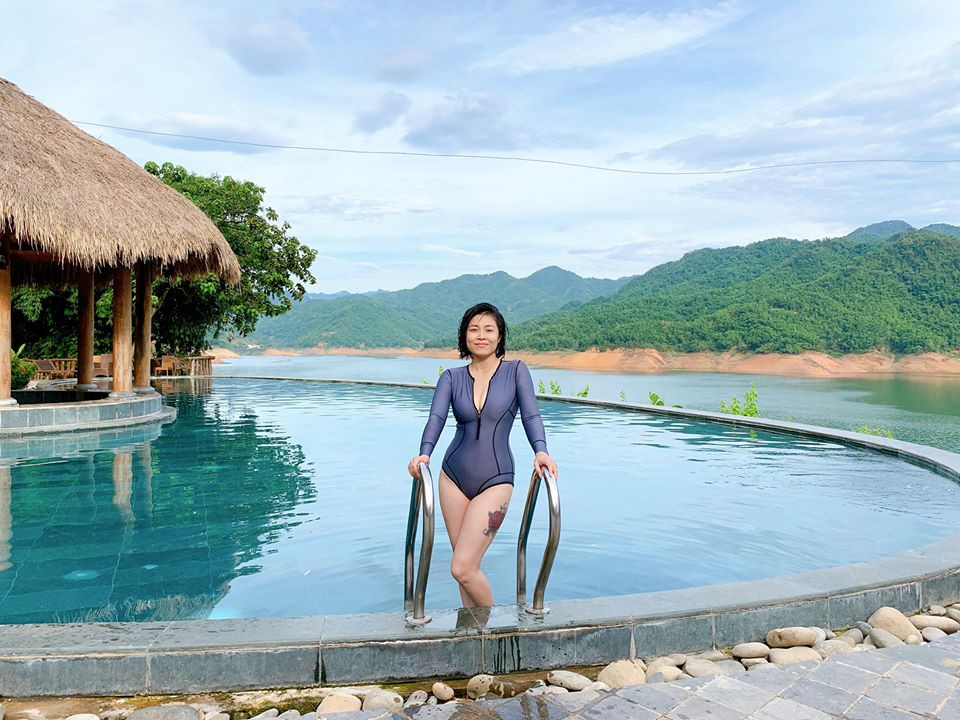 Mới đây, MC Hoàng Linh chia sẻ loạt ảnh nhân chuyến nghỉ dưỡng cùng gia đình tại Mai Châu, Hòa Bình.