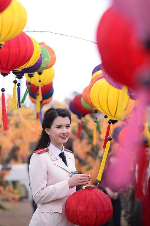 Cô gái trẻ dịu dàng giữa sắc màu đèn lồng.