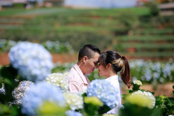 Ở giữa vườn hoa cẩm tú cầu tại Đà Lạt, BTV Nguyễn Hoàng Linh và chồng sắp cưới đã trao cho nhau những cử chỉ thân mật và nụ hôn ngọt ngào. Cùng ngắm ảnh đẹp của BTV Hoàng Linh của chương trình Chúng tôi là chiến sỹ.