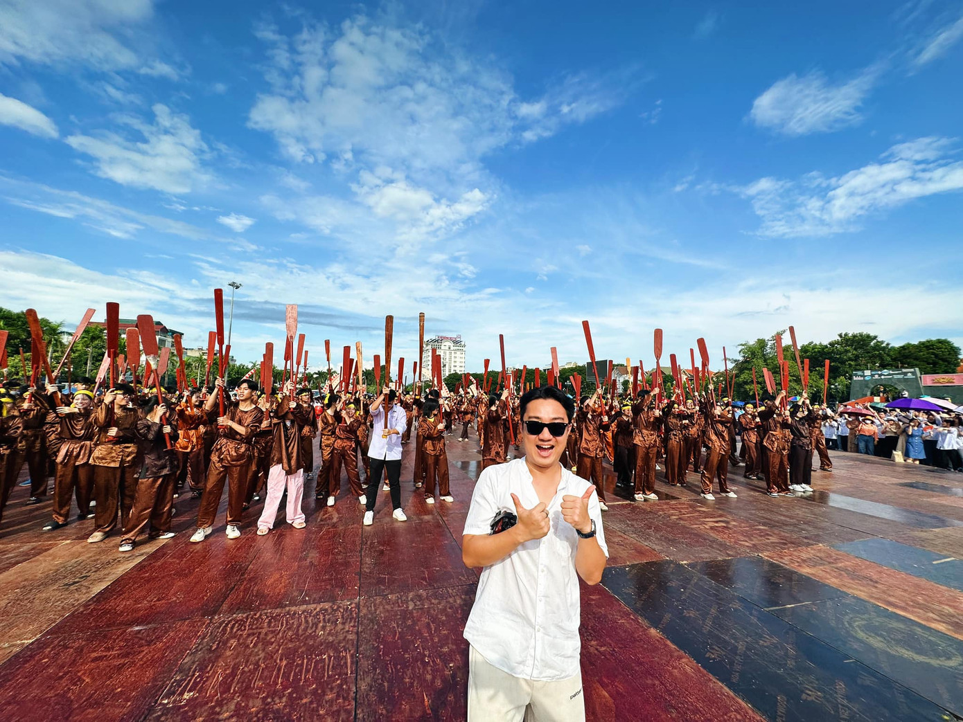 | Nam MC không chỉ hòa nhập mà còn... hòa tan vào sức nóng tại điểm cầu Thanh Hóa. |