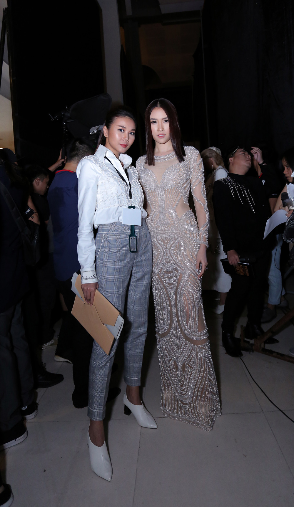Thanh Thanh Huyền cũng chọn cho mình phong cách trang điểm khá nhẹ nhàng với mái tóc thẳng tự nhiên. Nữ MC xinh đẹp cho biết, cô được NTK Công Trí tư vấn rất kỹ lưỡng về phần trang phục cũng như những góp ý giúp cô xuất hiện nổi bật trong lần đảm nhận vai trò quan trọng này. Đặc biệt trên thảm đỏ của sự kiện, người đẹp từng lọt top 15 Hoa hậu hoàn vũ 2015 còn tự tin sóng bước cùng nhiều sao Việt khác như ca sĩ Đức Phúc và đặc biệt là siêu mẫu Thanh Thanh Hằng. Nữ MC với đôi chân dài 1m1 nổi bật bên đàn chị - người chọn phong cách thời trang khỏe khoắn với quần tây, áo sơ mi trắng.