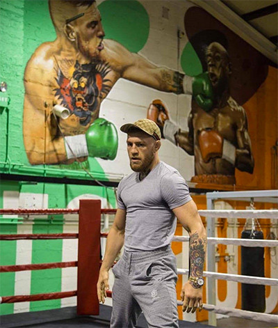 McGregor đã nhờ một họa sĩ có biệt danh Subset vẽ lên tường của phòng tập một bức tranh anh đấm knock-out Mayweather với tay trái sở trường. McGregor khoe bức ảnh này thông qua Instagram, với chú thích: "Tôi là con thú Ireland bẩn thỉu".