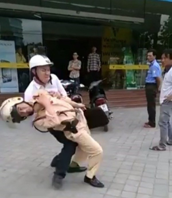 Tại đây, bị can 20 tuổi này đã cương quyết chống đối, không chấp hành. Sau khi lăng mạ, nam thanh niên dùng tay vật ngã thiếu tá Hải xuống đường rồi dùng gạch đá tiếp tục hành hung người thi hành công vụ. Toàn bộ sự việc được một người chứng kiến quay lại và tung lên mạng xã hội.