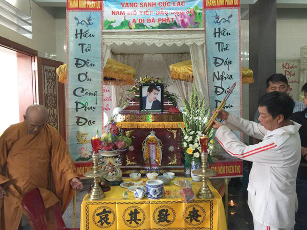 Một người bạn của Duy Nhân cho biết, thi thể người mẫu bạc mệnh này được đưa tới chùa Vĩnh Nghiêm vào lúc 10h hôm nay nay. Khoảng 10h30 phút, các sư thầy bắt đầu đọc kinh để tiến hành lễ viếng Duy Nhân.
