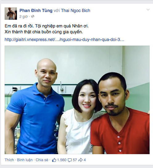 Trong buổi sáng hôm nay, rất nhiều đồng nghiệp gửi lời chia buồn và tiếc thương tới Duy Nhân trên mạng xã hội.