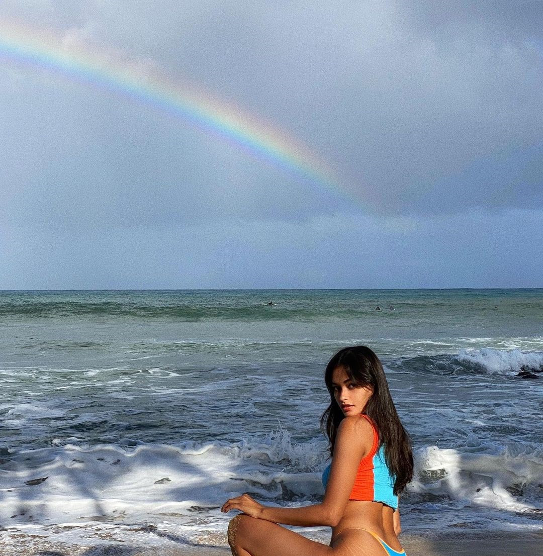 Nàng mẫu Brazil chụp ảnh giữa khung cảnh cầu vồng trên biển tuyệt đẹp.