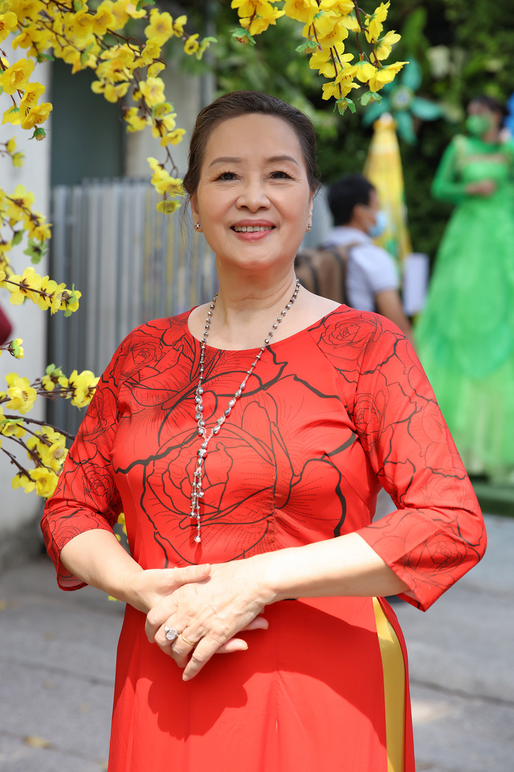 Mẹ của Khánh Thi tuy đã 73 tuổi nhưng vẫn gây ngỡ ngàng với nhan sắc trẻ trung, duyên dáng. Bà diện áo dài đỏ rực nổi bật khi tham gia MV của con gái.