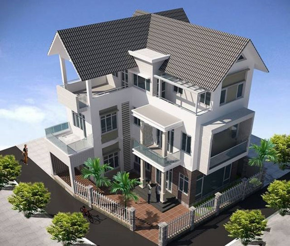 Biệt thự 3 tầng chữ L 200m2 mái thái hiện đại ngày càng phổ biến.