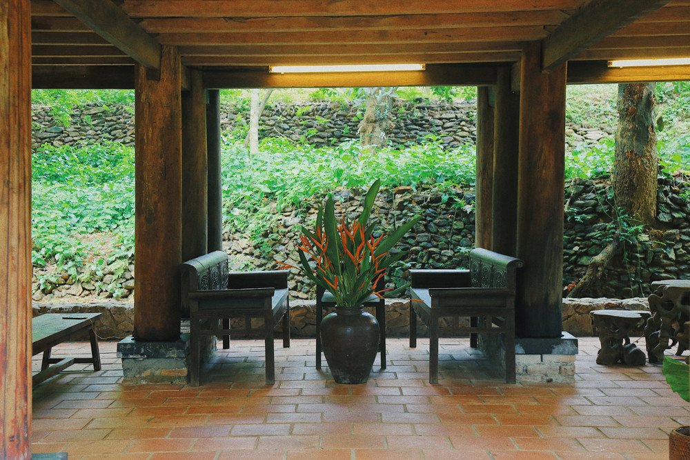 “Tổng thể cả khu nhà là 3.000m2. Từ năm 2005, chú ruột mình là nhà điêu khắc Khúc Quốc Ân tự tay quy hoạch, xây dựng giai đoạn đầu căn nhà sàn và nhà ba gian cho đại gia đình đến an dưỡng, nghỉ ngơi. Tuy nhiên, do nhiều lý do, sau đó khu nhà để không từ năm 2011 đến năm 2017. Sau một thời gian dài bỏ không, vợ chồng mình về đây trùng tu lại”, chị Nhàn tiết lộ.