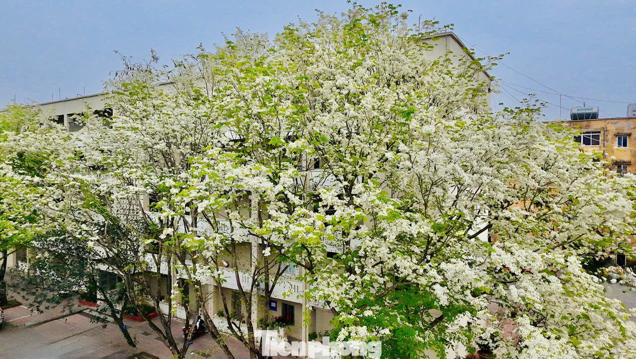 Tại khuôn viên khu nhà Ngoại giao đoàn ven hồ Đắc Di, một dãy cây sưa đang nở hoa trắng xóa tạo nên cảnh quan tự nhiên đẹp mắt.