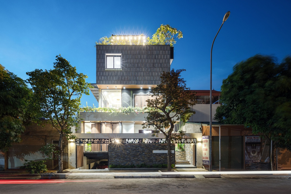 Căn nhà được thiết kế nhiều giếng trời ở các vị trí quan trọng để lấy ánh sáng xuống tận tầng hầm, làm cho không gian hầm trở nên tươi mát và dễ chịu hơn, đưa được mảng xanh vào tận các góc nhỏ của công trình.
