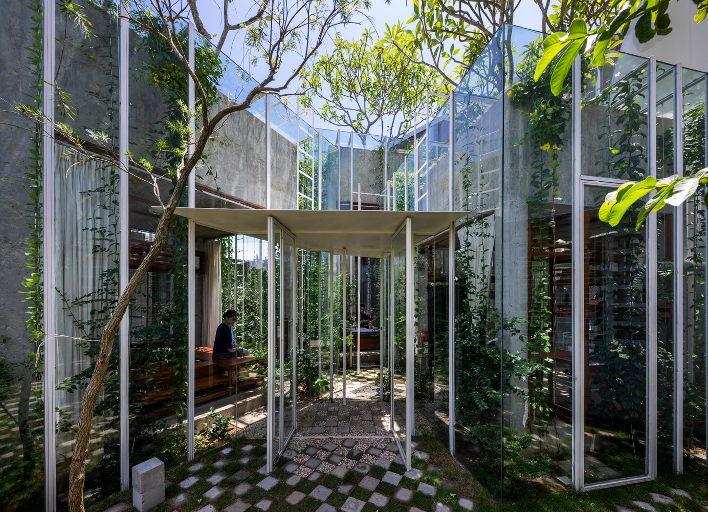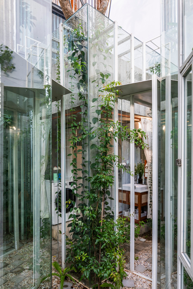 | Người sinh sống có thể nhìn xuyên qua mọi không gian trong nhà, từ nhà bếp đến không gian ngủ, từ sân trước đến sân trong và thậm chí cả những cây hoa đại trên sân thượng. |