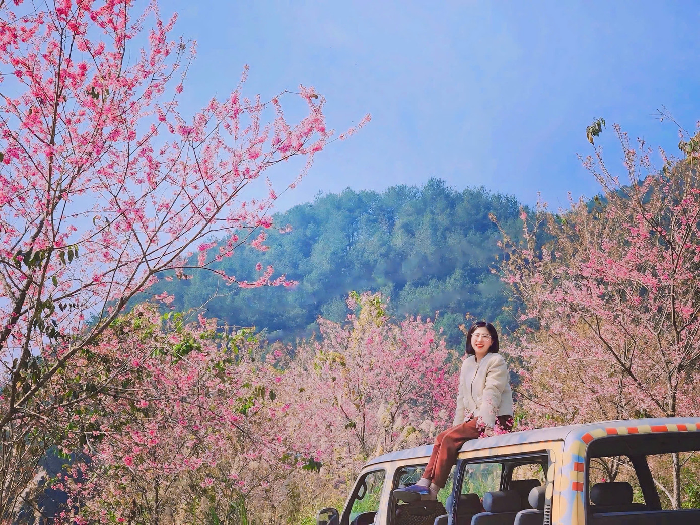 | Hoa mai anh đào không chỉ là biểu tượng của mùa xuân vùng cao mà còn là điểm thu hút du khách từ khắp nơi. Nhiều người lưu lại những khoảnh khắc tuyệt đẹp bên những cánh hoa anh đào tươi thắm. |