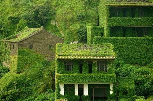Vì vậy, những ngôi nhà phủ đầy cây lá, mang một màu xanh mướt vừa cổ mị, vừa bí ẩn.