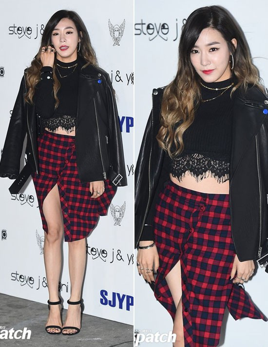 Tiffany (SNSD) luôn sở hữu gu thời trang hiện đại và đẹp mắt. Mỗi lần xuất hiện, cô đều làm hài lòng công chúng bởi diện mạo ưa nhìn. Áo lửng kết hợp chân váy kẻ sọc lạ mắt và áo khoác ngoài tạo nên nét đẹp ấn tượng, cực chất.