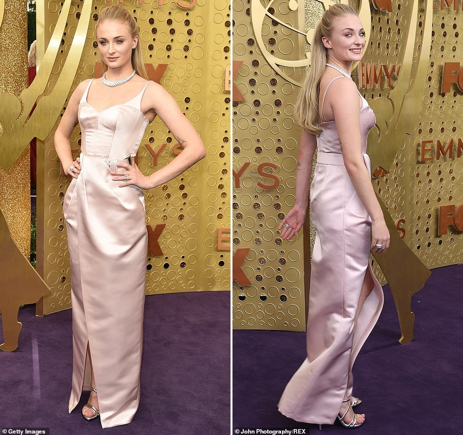 Mỹ nhân sinh năm 1996 Sophie Turner thanh lịch với đầm Louis Vuitton. Cô được đề cử giải Emmy ở hạng mục "Nữ diễn viên phụ xuất sắc cho thể loại series drama" cho vai diễn Sansa Stark trong series đình đám của HBO.
