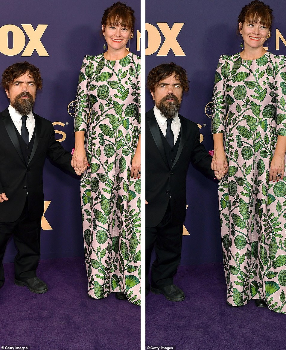 Người duy nhất trong dàn diễn viên "Game of Thrones" có tượng vàng mang về là tài tử Peter Dinklage. Anh đến sự kiện cùng bà xã Erica Schmidt.