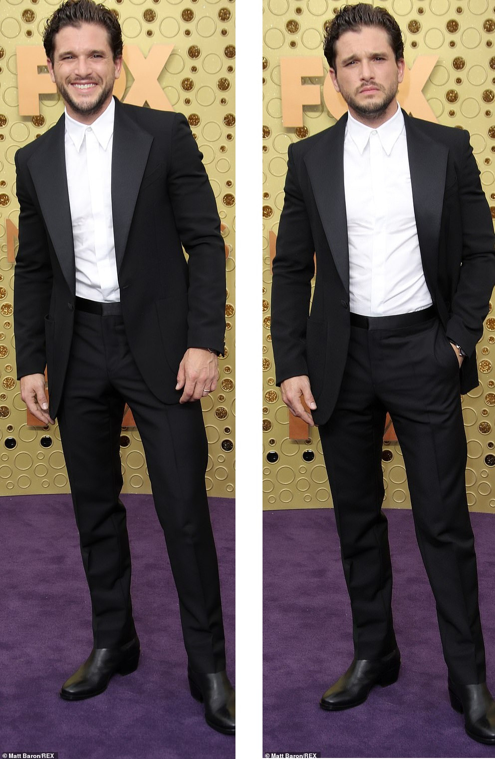 Kit Harington lịch lãm với bộ tuxedo, nhưng thiếu cà vạt. Anh vừa trượt giải "Nam diễn viên chính xuất sắc cho thể loại series drama" trong Emmy năm nay.