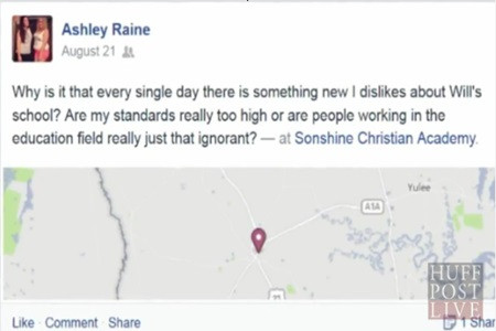Cô viết trên Facebook rằng: “Tại sao mỗi ngày đều xuất hiện thêm những điều mới khiến tôi không thích về trường của Will? Là tiêu chuẩn của tôi thực sự quá cao hay là những người làm trong lĩnh vực giáo dục chỉ toàn người ngu dốt.” Và sau đó ‘tag’ gắn thẻ Facebook của nhà trường trong bài viết.