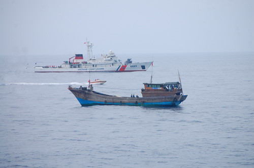 Quả thật, ra đến biển mới thấy đại dương mênh mông. Đứng trên tàu 8001 - con tàu hiện đại nhất của lực lượng CSB Việt Nam tính đến thời điểm này có trọng tải 2.200 tấn - nhìn về phía sau là tàu 8003 trọng tải 1.400 tấn cũng chỉ thấy con tàu như một đốm trắng trên biển. Nói gì tới tàu đánh bắt của ngư dân với trọng tải thông thường chỉ hơn 100 tấn. Những con tàu ấy gặp sóng to gió lớn chỉ giống như chiếc lá tre nhỏ xíu, bị cột sóng cao che lấp, nhiều khi chỉ nhìn thấy đúng mũi tàu.