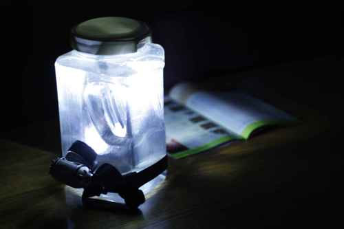 Nhờ chất liệu trong suốt của bình nước bạn có thể khuếch đại ánh sáng của một chiếc đèn nhỏ. Ảnh: Supercompressor.