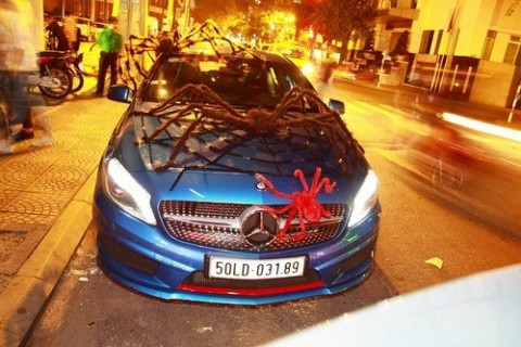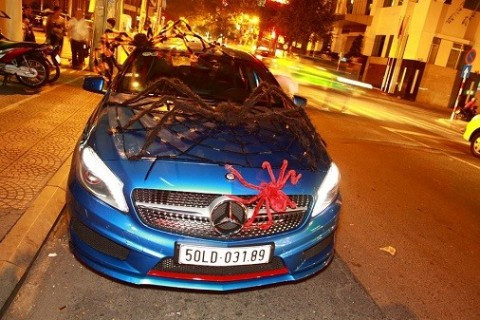 Một số hình ảnh của chiếc Mercedes A250 Sport AMG trong đêm Halloween ở Sài Gòn: