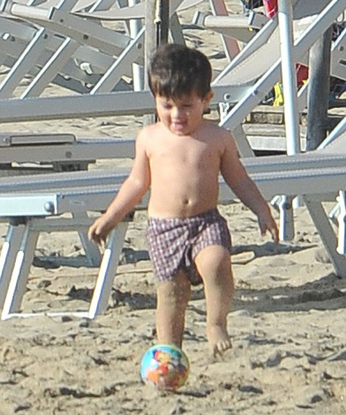 Trong chiếc quần short, người cởi trần và nụ cười rạng rỡ, cậu con trai của tiền đạo Lionel Messi đã làm các thành viên trong gia đình Messi reo hò liên tục khi chơi bóng trên bãi biển Sabaudia, Lazio.