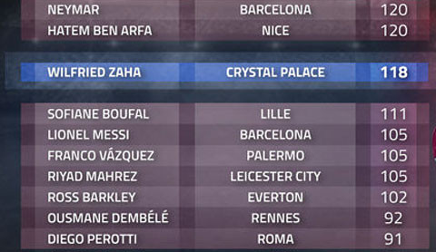 Nếu chỉ tính riêng ở giải Ngoại hạng Anh, Zaha không có đối thủ ở khả năng đi bóng. Cầu thủ có thành tích tốt thứ 2 sau anh là ngôi sao Riyad Mahrez của Leicester City chỉ có 105 pha qua người thành công. Zaha hiện cũng là cầu thủ người Anh giỏi đi bóng hơn cả. Đồng hương bám sát anh nhất là tiền vệ Ross Barkley của Everton chỉ xếp thứ 8 với 102 pha đột phá thành công.