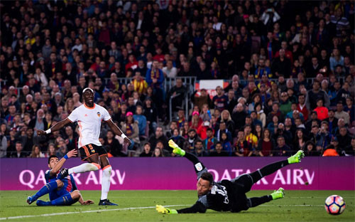 Đang hồi sinh dưới sự dẫn dắt của HLV Voro, Valencia thi đấu rất có nét trong trận đấu tối 19/3 trên sân Nou Camp. Đội bóng áo trắng không chỉ thực hiện được nhiều đợt phản công ấn tượng mà còn ghi bàn trước nhờ cú đánh đầu của hậu vệ Eliaquim Mangala.