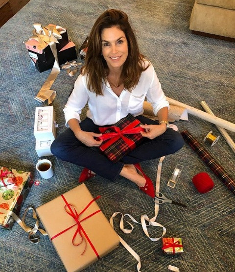 Siêu mẫu huyền thoại Cindy Crawford bên cây thông lớn trong nhà.