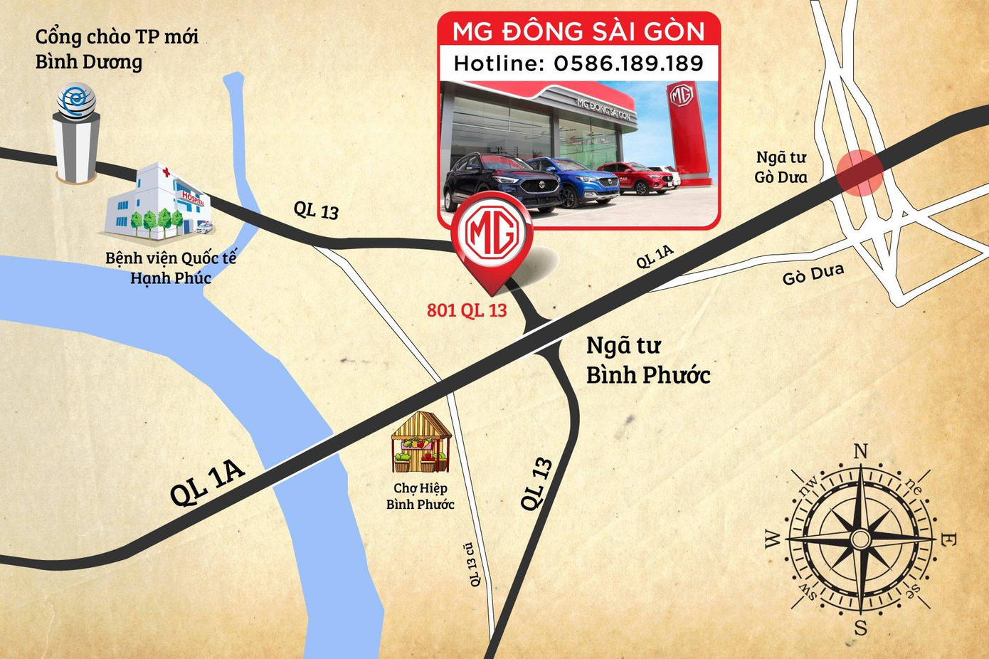 Tọa lạc tại 801 QL13, Hiệp Bình Phước, Thủ Đức, Tp. Hồ Chí Minh, MG Đông Sài Gòn nằm ở vị trí đắc địa, nơi giáp ranh giữa TP Hồ Chí Minh - trung tâm kinh tế lớn nhất Việt Nam và thành phố mới đầy tiềm năng TP. Thuận An - Bình Dương.