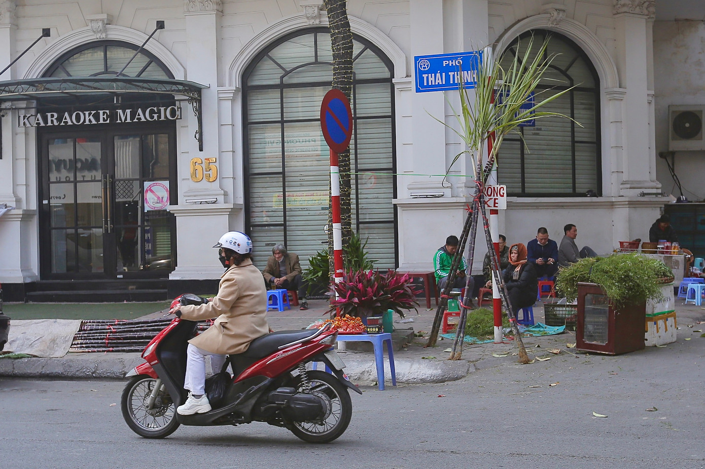 | Dọc phố Tây Sơn xuất hiện hàng chục tiểu thương bán mía lộc. |
