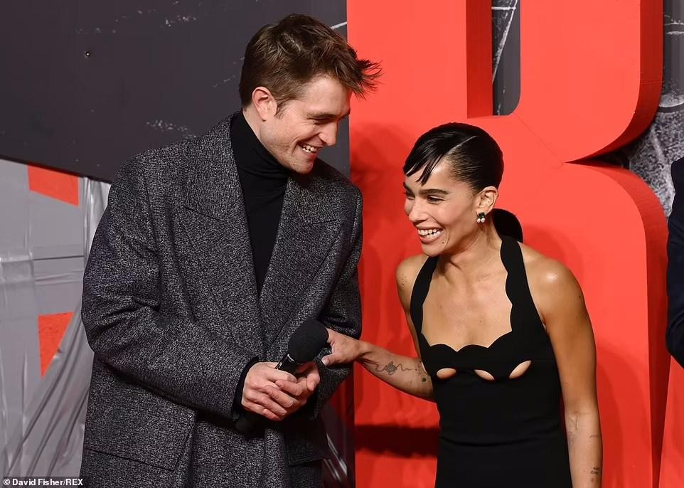 | Hai ngôi sao Hollywood cùng sánh đôi trên thảm đỏ. Trong phim, tài tử "Chạng vạng" vào vai nam chính - Batman, còn Zoe đóng Catwoman (Miêu nữ). |