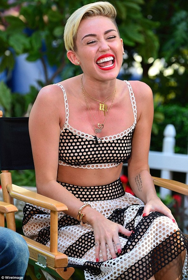 Kể từ sau khi đến thăm bạn trai Liam Hemsworth ở Canada, tâm trạng Miley có vẻ tốt hơn rất nhiều, cô liên tục nói cười ‘thả phanh’ trong suốt buổi ghi hình ở trường quay.