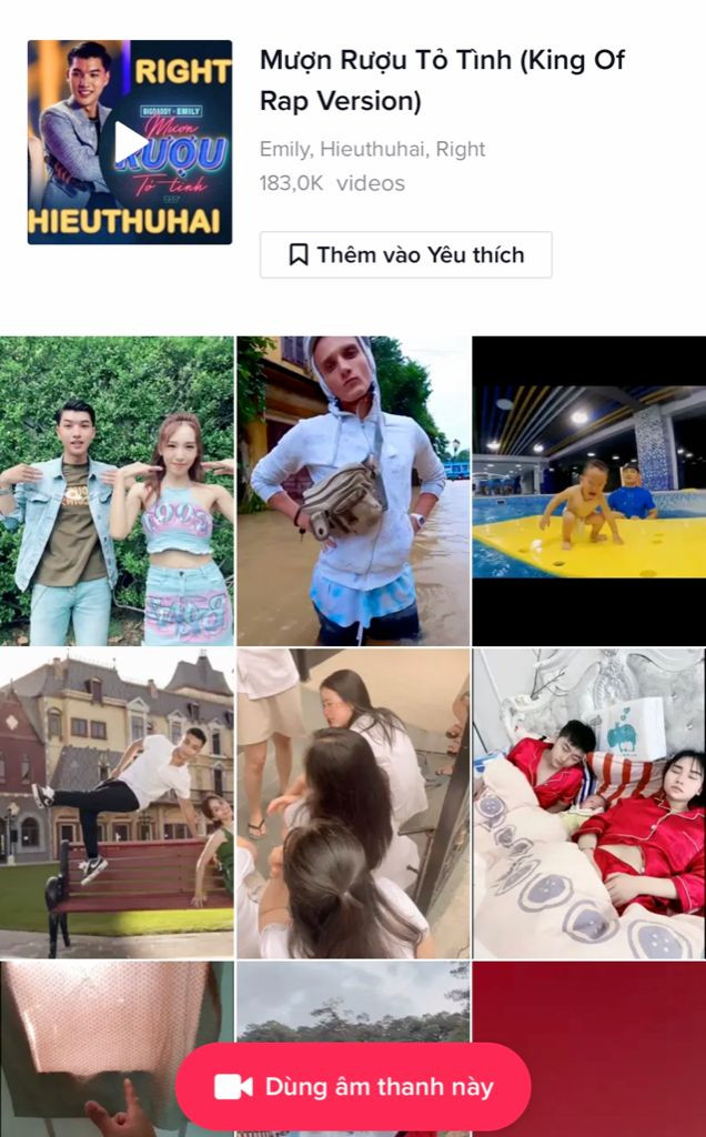 Kế đến, dù ra mắt cách đây tận 1 năm nhưng bản hit Mượn Rượu Tỏ Tình vẫn nghiễm nhiên "chiếm sóng" trên MXH. Theo đó, phiên bản mới mẻ do bộ ba HIEUTHUHAI, Emily và Right thể hiện tại King Of Rap được nhiều khán giả đón nhận nhiệt tình.
