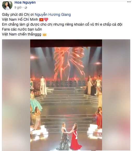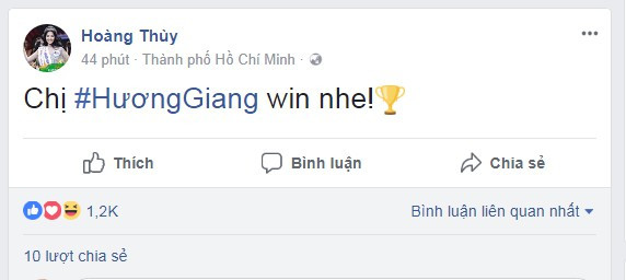 Á hậu Hoàng Thuỳ hashtag Hương Giang trên trang cá nhân.