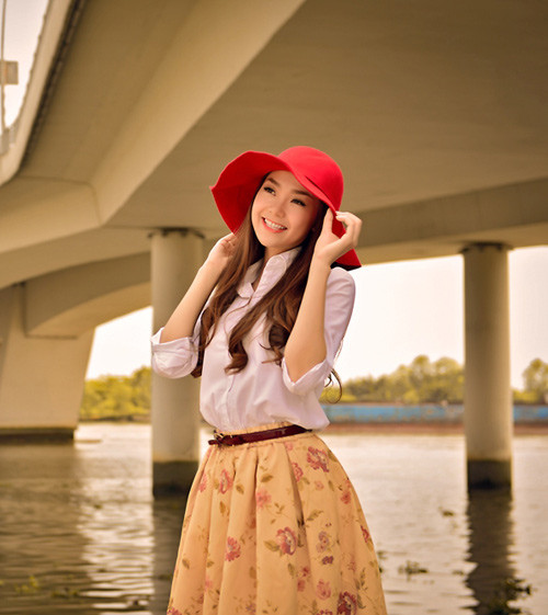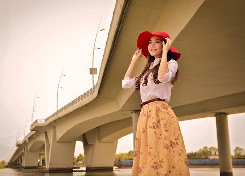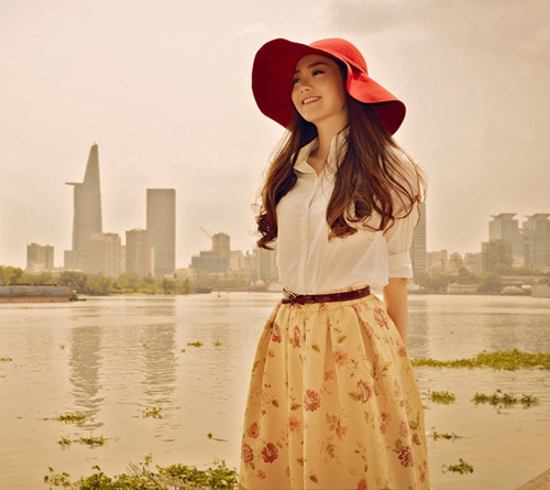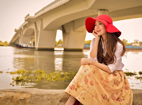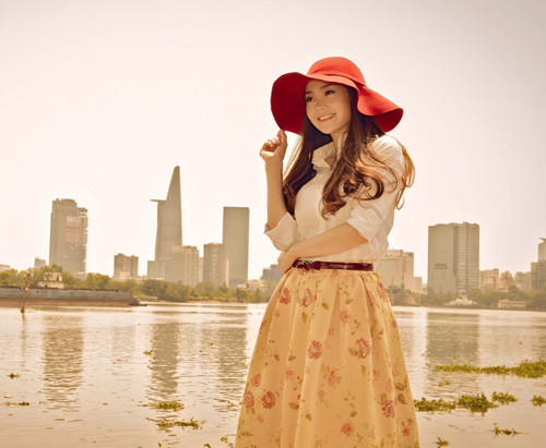 | Minh Hằng đẹp dịu dàng, tinh khôi bên bờ sông Sài Gòn. |