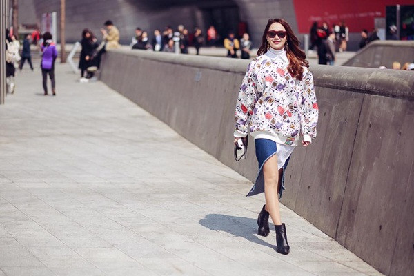 Minh Hằng khá chuyên nghiệp tại chuyến đi khám phá thời trang ở kinh đô châu Á. Các fashionista tại Seoul Fashion Week đã thể hiện phong cách thanh lịch, thời thượng nhưng đồng thời cũng mang tính ứng dụng cao.