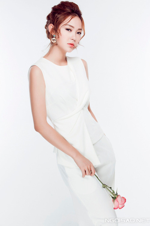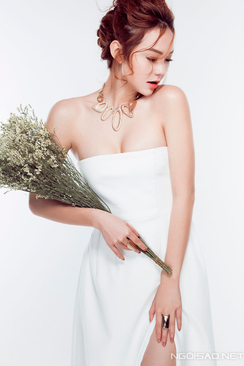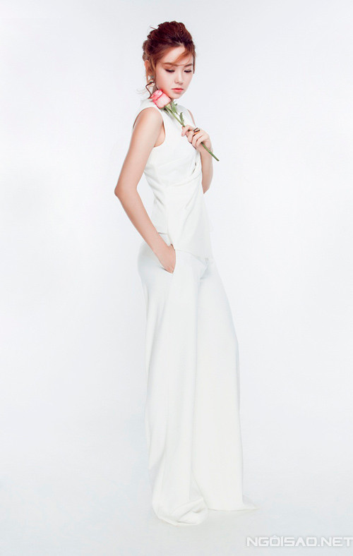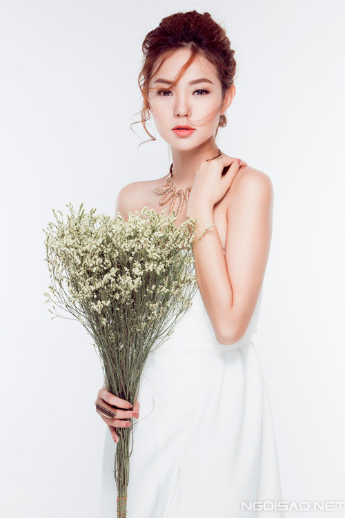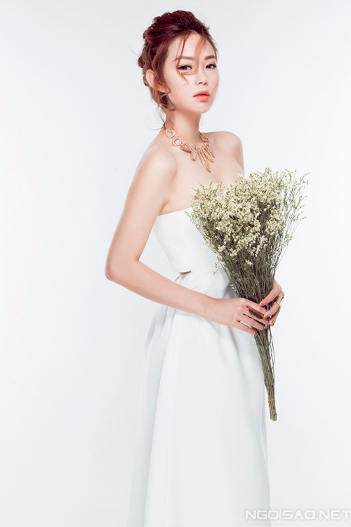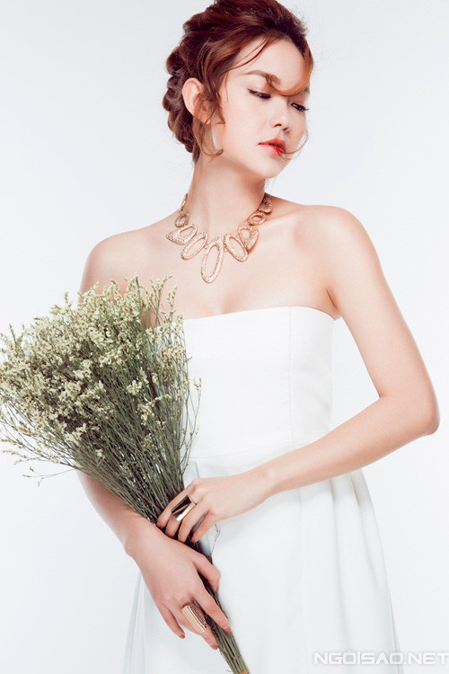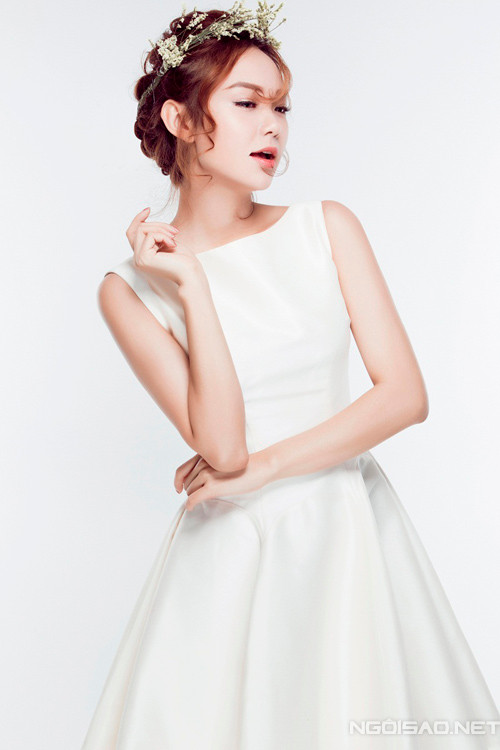 Minh Hằng vừa thực hiện bộ ảnh mới với những thiết kế trắng tinh khôi, trông cô đẹp dịu dàng và mong manh.