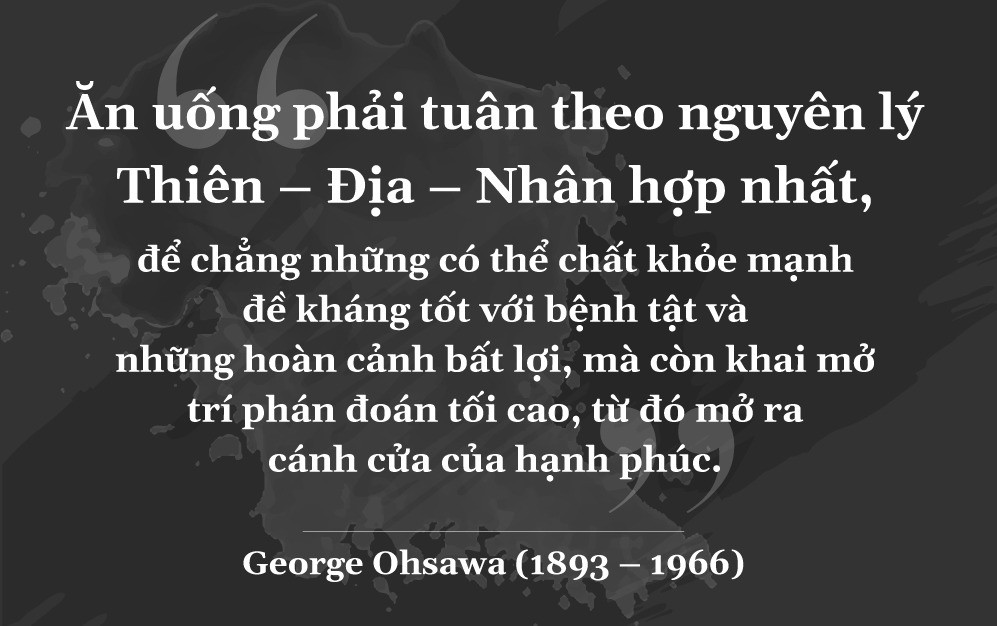 Con người là vũ trụ thu nhỏ, con người và môi trường sống thống nhất với nhau. Một cơ thể khỏe mạnh phải có sự cân bằng và phù hợp với chu kỳ biến đổi của tự nhiên. Vì vậy cần xem ăn uống như một phương thức để thực hiện và duy trì mối liên hệ hoà hợp giữa con người, thiên nhiên và vũ trụ.