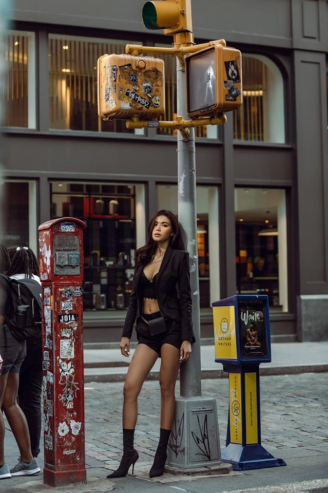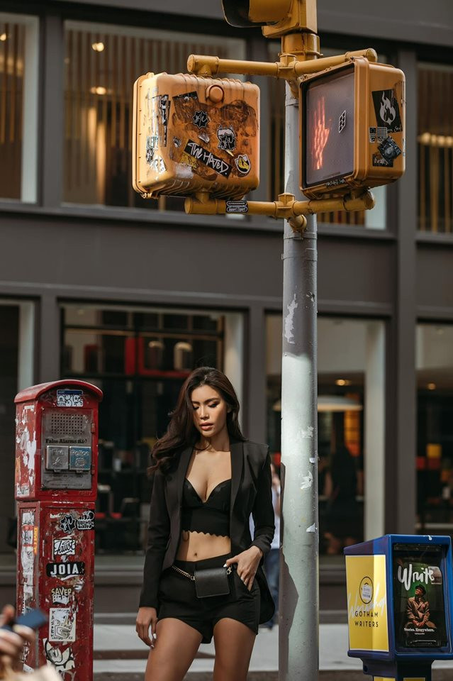 Minh Tú chiếm trọn spotlight trên đường phố Mỹ với bộ cánh táo bạo.