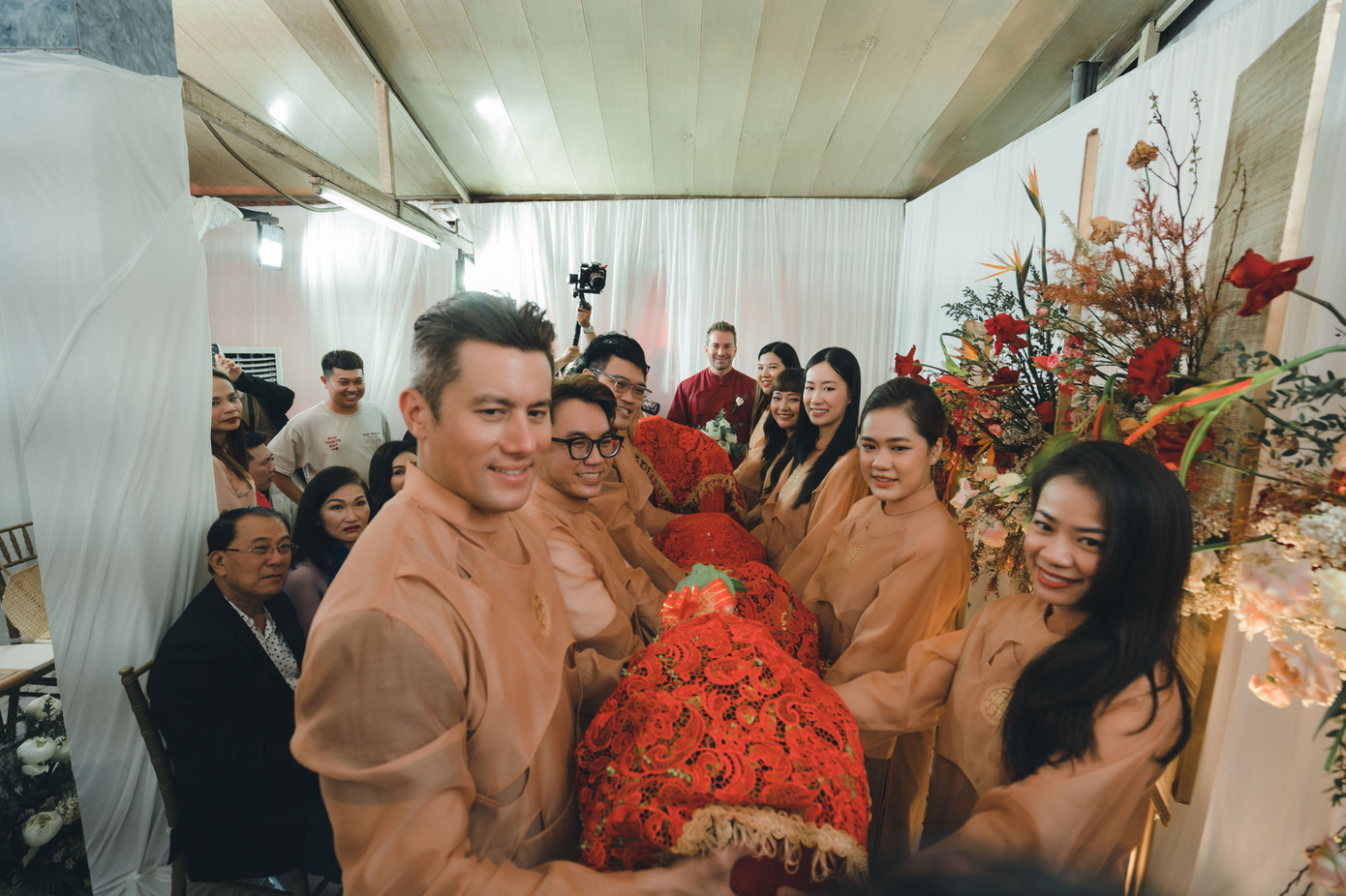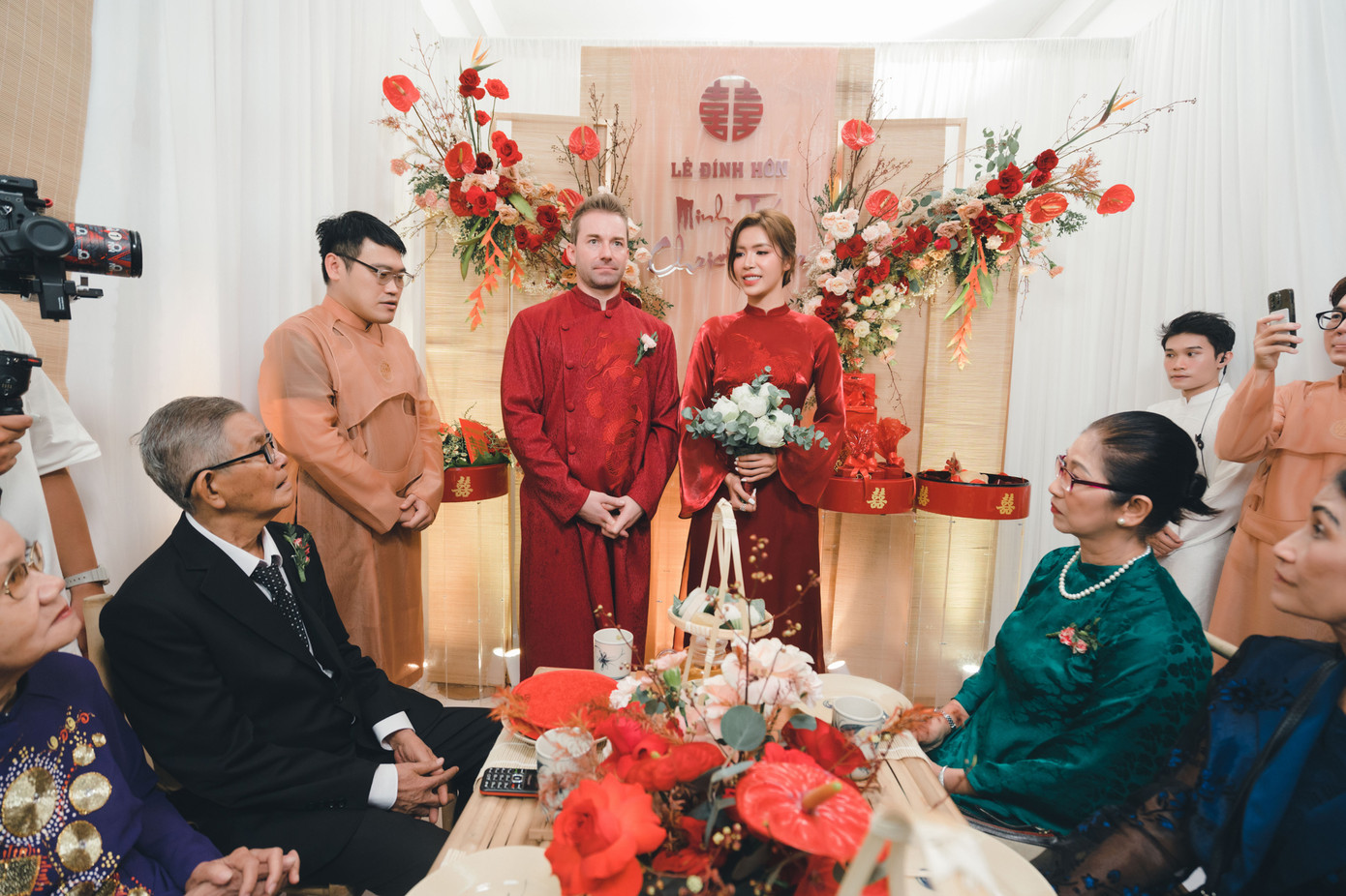 Buổi lễ ấm cúng của gia đình đã diễn ra suôn sẻ, với sự góp mặt của 20 khác, gồm người trong gia đình và bạn bè thân thiết. Bạn bè, gia đình đều vui mừng và hạnh phúc khi chứng kiến ngày trọng đại và đầy ý nghĩa của vợ chồng Minh Tú. Cô chia sẻ với ba: “Con chuẩn bị buổi lễ này rất là gấp vì con biết tình hình sức khỏe của ba và ngày này ba mẹ cũng đã chờ đợi lâu rồi. Con quyết định làm buổi lễ này để cho ba và mẹ an tâm”.