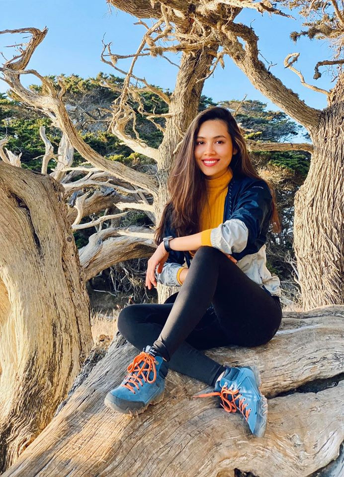 Á hậu Hoàng My thích thú khám phá phong cảnh hoang dã của nước Mỹ.