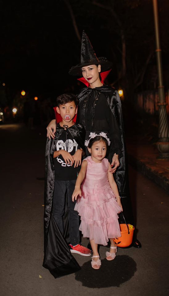 Gia đình Hoa hậu Hà Kiều Anh ấn tượng với trang phục gia đình phù thuỷ trong ngày lễ Halloween.