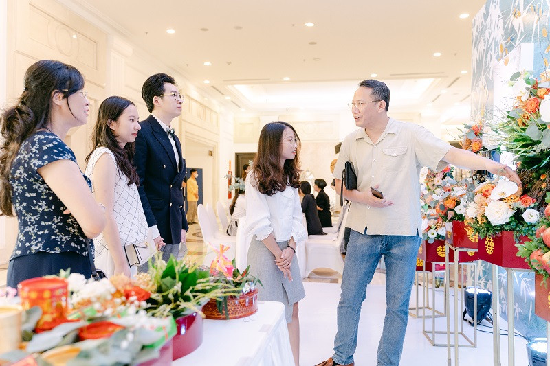 Mặc dù tháng 02/2021 con gái mới làm đám cưới nhưng bà Nguyễn Thị Phương (Hà Nội) vẫn cất công cùng con từ Nam Từ Liêm sang Long Biên để tham quan triển lãm. Bà Phương chia sẻ, hiện tại gia đình đang phải liên hệ quá nhiều đầu mối dịch vụ khiến việc chuẩn bị vừa mất thời gian, vừa gây mệt mỏi. “Đám cưới bây giờ gọi là tối giản nhưng vẫn đầy đủ, trang trọng. Năm 2013 tổ chức đám cưới cho con trai xong tôi ốm mất 1 tháng, giờ nghĩ lại vẫn sợ”, bà Phương nhớ lại.