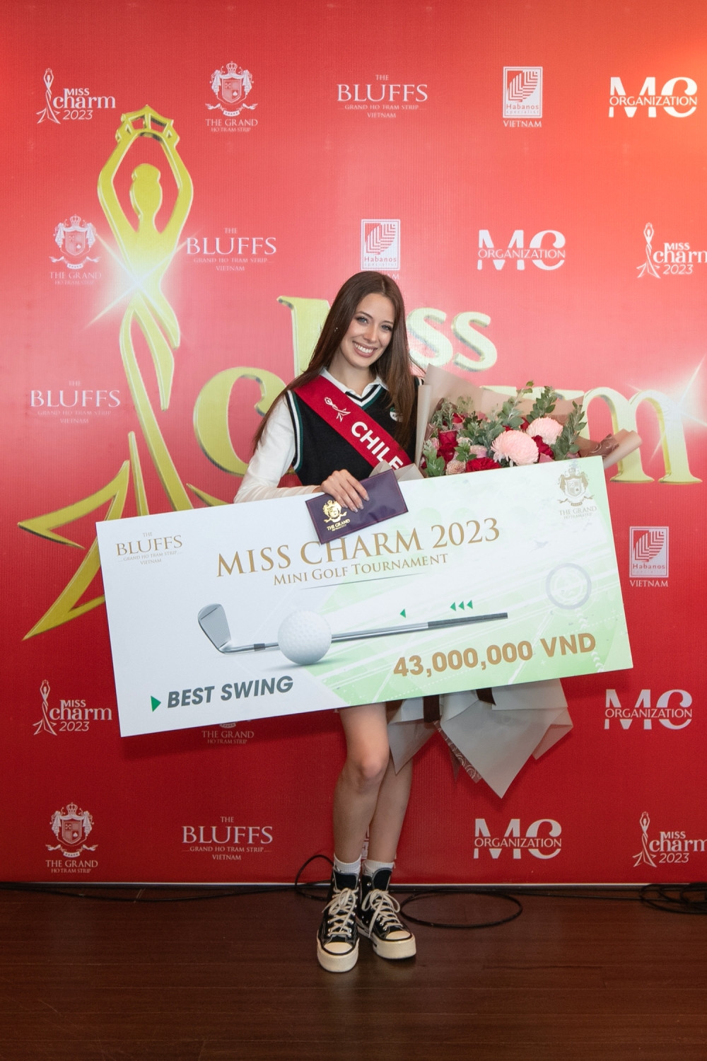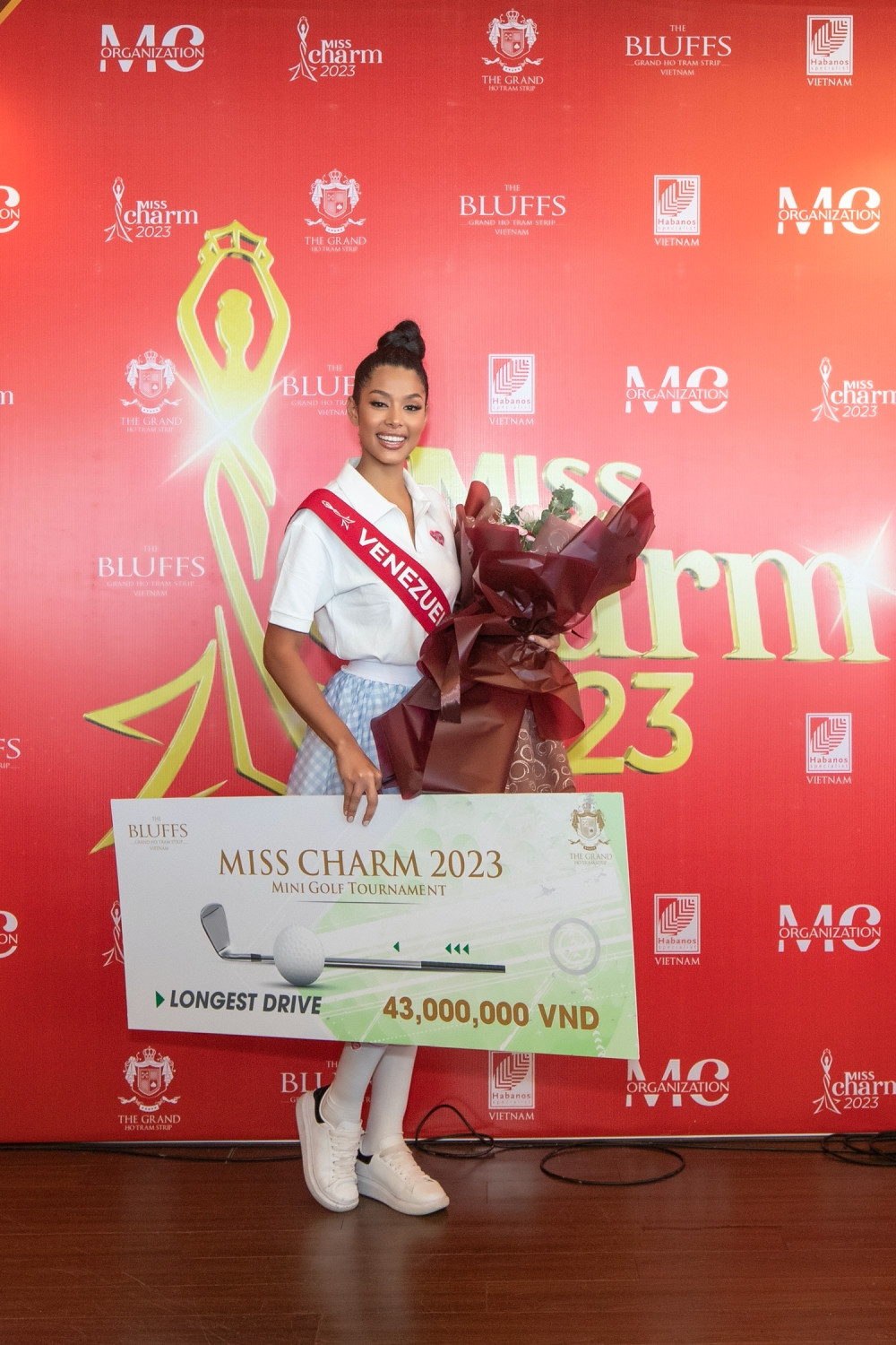 Gần 40 thí sinh Miss Charm 2023 đã có những trải nghiệm đáng nhớ tại sân golf. Dàn mỹ nhân quốc tế rạng rỡ, tràn đầy năng lượng và tự tin khoe sắc vóc khỏe khoắn trong loạt trang phục thể thao năng động. Các thí sinh được làm quen với bộ môn golf đồng thời tham gia một giải đấu mini.